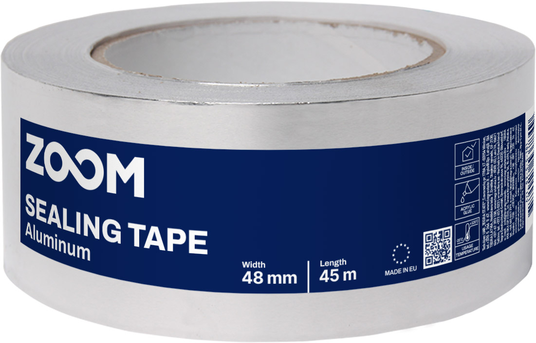 Folia aluminiowa pokryta klejem akrylowym na bazie rozpuszczalnika i zabezpieczona silikonowaną papierową warstwą ochronną. Taśma aluminiowa 48 mm x 45 m służy do uszczelniania połączeń i szwów podczas montażu izolacji odblaskowej w celu ograniczenia strat ciepła, zapobiegania przedostawaniu się pary wodnej, uszczelniania połączeń rur, kanałów wentylacyjnych, obudów i innych elementów.